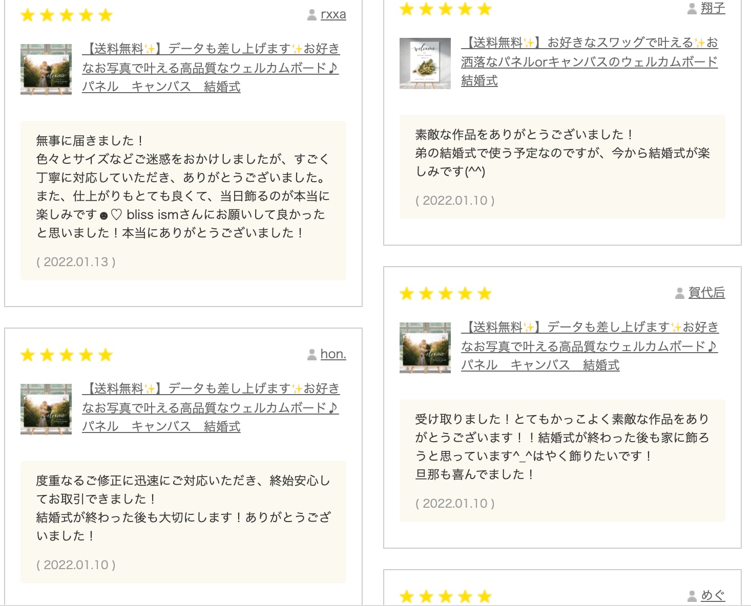 ほぼ皆様に★5の評価をいただいております、大変人気のウェルカムボードです!