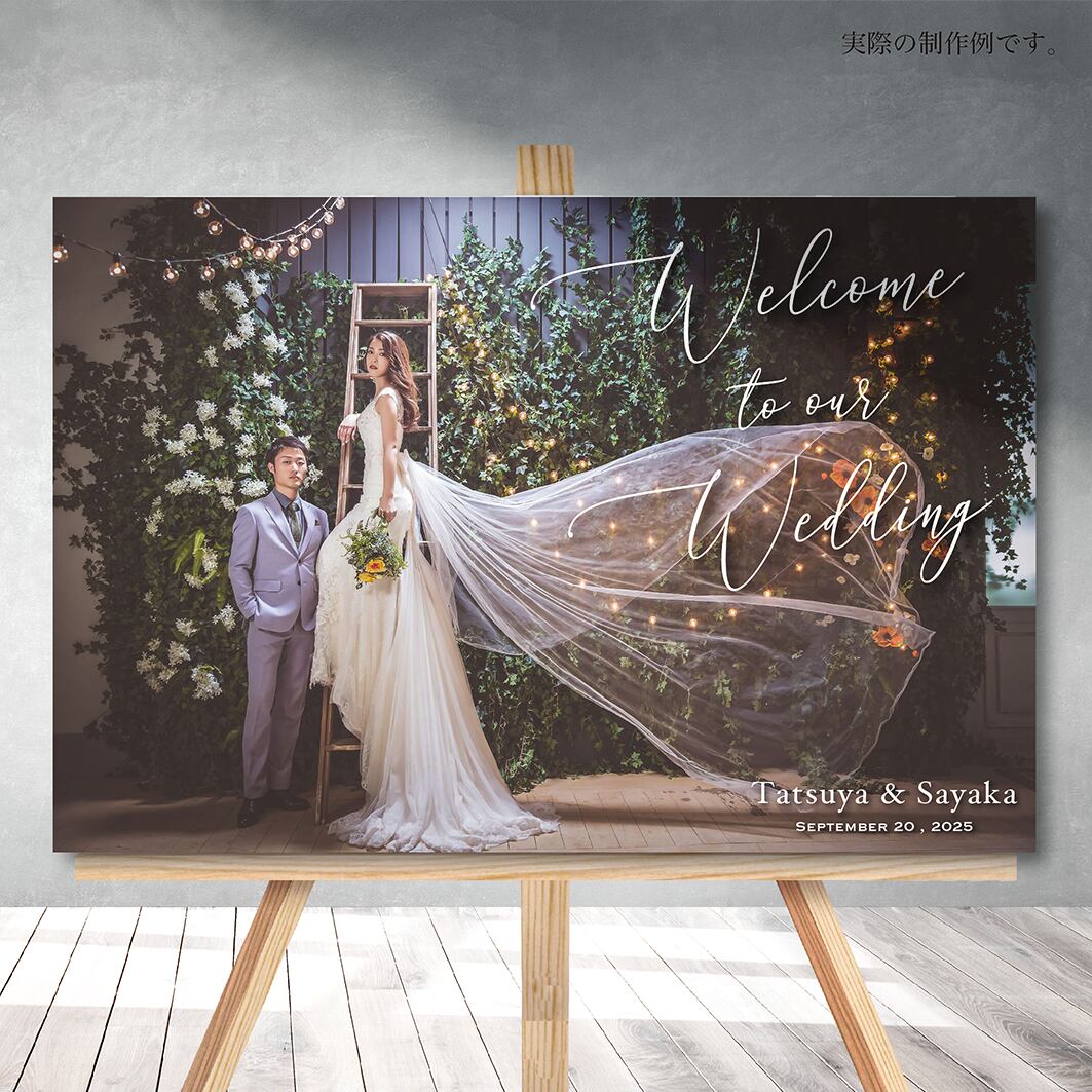 印刷業者様に特注します。厚さ7㎜のしっかりしたパネルに耐光性の強い専用UVインクで直接印刷します。耐光性が強いため屋内であれば長期の掲示が可能!式後もお家に末永く飾れます♫